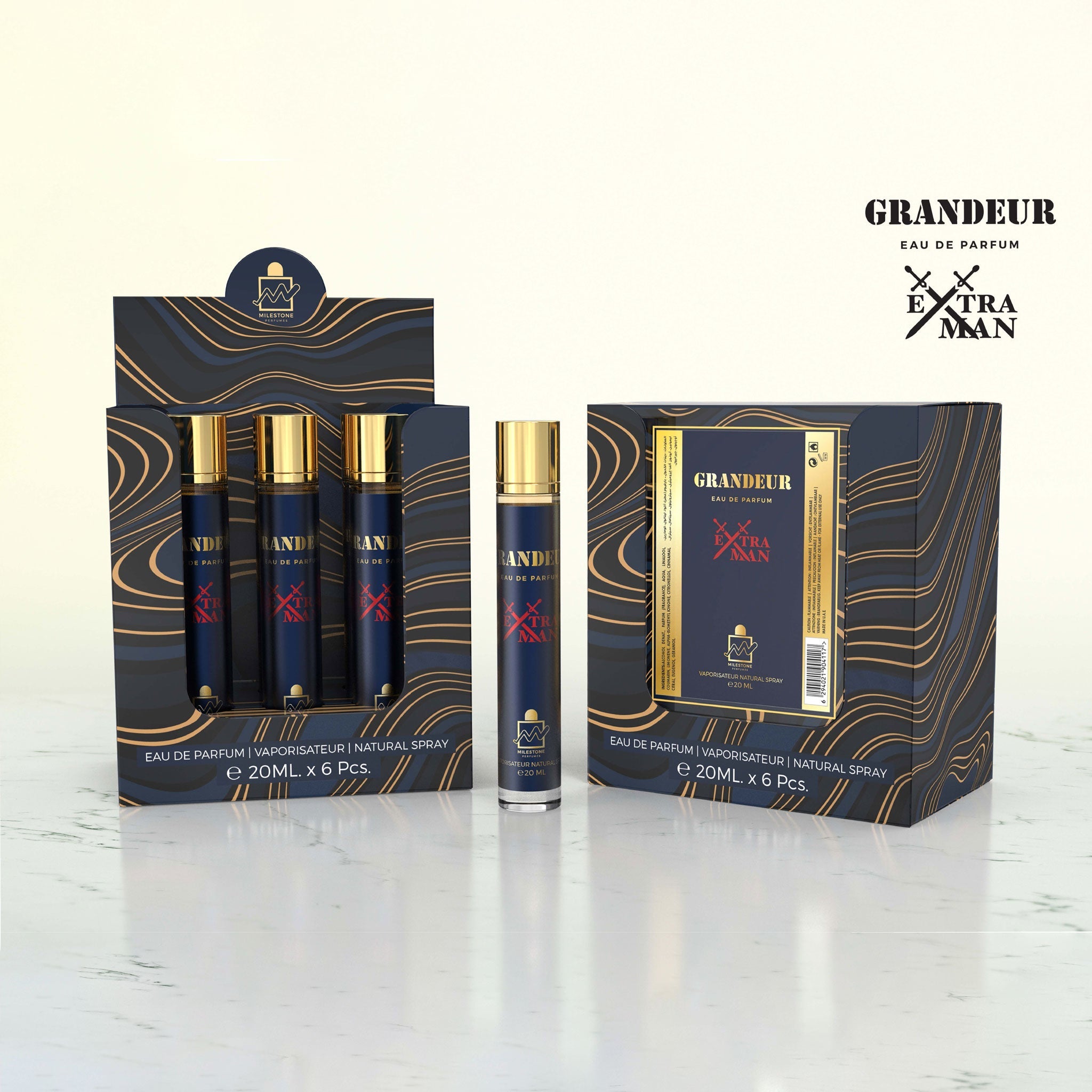 MILESTONE Grandeur Extra Man Eau De Parfum 5x 20ml Plus 1 Free Tester